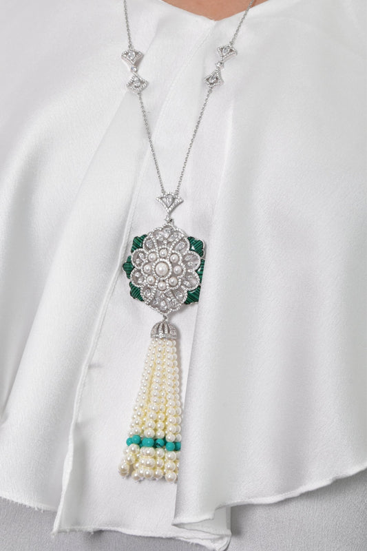 Shamsa Pearl Long Necklace Earrings Set