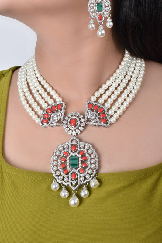 Amira Red Set Necklace Earrings