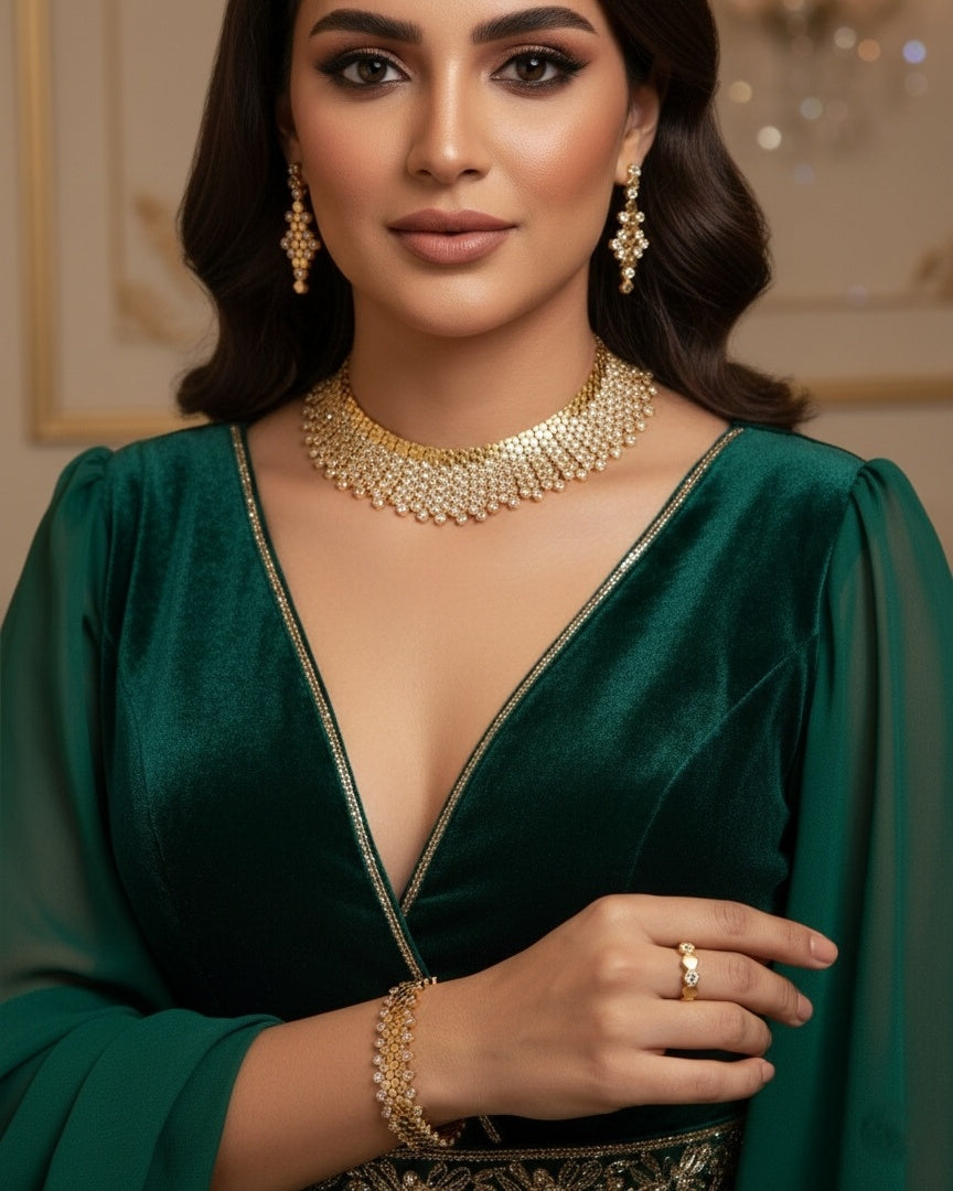Sparkle like royalty with the Clement Gorgeous Set—golden glamour meets dazzling zircons for that show-stopping shine!